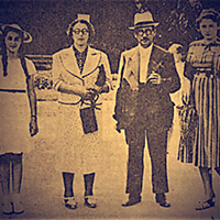 Три Љубине кћери Анђелија, Даница и Десанка 1923. године на клупи испред апотеке на Житном пијацу