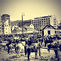 Пазарним даном тај ужички пијац је био препун људи, јунади, крава, телади, волова и бикова, огромних вунених овнова уврнутих рогова, оваца и јагњади, да игла није имала где да падне.