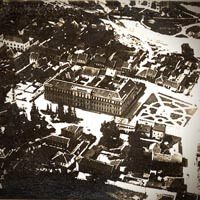 Преко улице се види фирма која означава пумпу за бензин. У позадини зграда данашње општине и Гимназије.