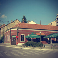 Ispred kafana bili su betonski, popločani trotoari. Kad krenu topliji dani ispred kafana su iznošeni stolovi, lijanderi u drvenim sanducima i drugo mediteransko bilje kojima bi ogradili te „Kafanske bašte“. Zaštite od sunca u tim baštama su bile raznolike. Neke su imale platnene hladnjake, neke čak i sa mehanizmom za dizanje i spuštanje, neke hladnjake od leskovih grana i paprati. Nekoma su hlad pravili pitomi bagremovi, nekima Lipe, jedna se i zvala „Kod Lipe“. Dudova i jabukova stabla su pravila hlad u kafani u izletištu u Adi a kafana izletišta u Koštici bila je u pravom parku i voćnjaku. Većina varoških kafana u svojim prostranim dvorištima imale su štalu, šupu, obor, poljski klozet.