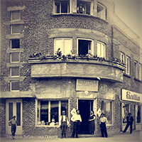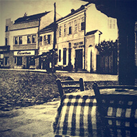 Центар Пожеге тридесетих година, између два светска рата, некада пијац, а данас је ту Трг слободе. У позадини кућа Милана Јеремића, трговца, десно (преко пута ње) кућа Милана Петронијевића, на чијем се месту данас налази Пошта. Разгледница у издању Сима Ђукића, књижара из Пожеге.