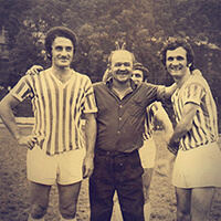 Чика Љубо Дубљанин је био синоним навијачке страсти ужичке “Слободе”. Радовали смо се “Слободиним” утакмицама, али и Љубиним коментарима. На овој фотографији Љубо и играчи